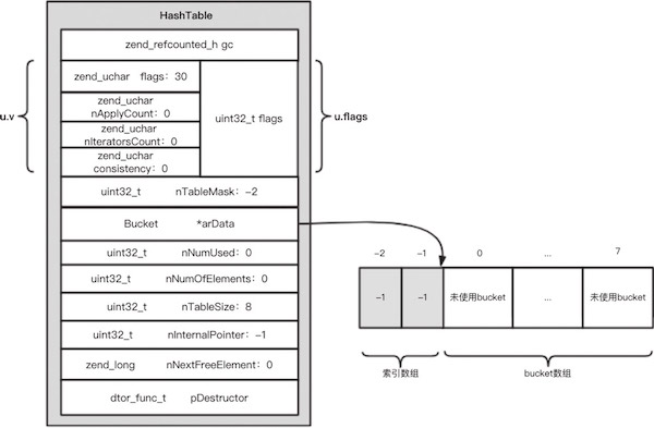 下面是PHP7.4中HashTable的源码定义(php-src/Zend/zend_types.h):